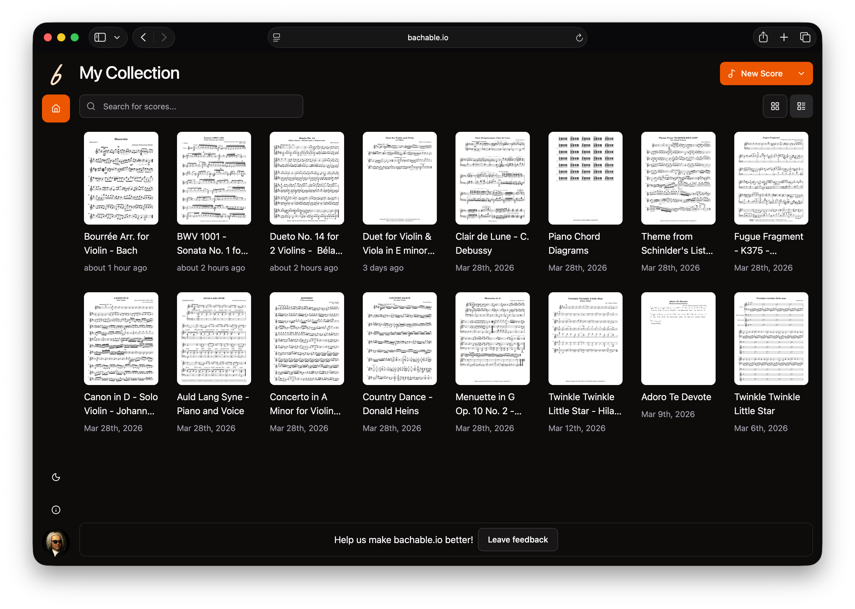 Bachable.io is a browser-based music notation tool. Write, collaborate, and publish professional sheet music with no local setup. The UI is complex: score editors, playback controls, export flows, real-time collaboration.